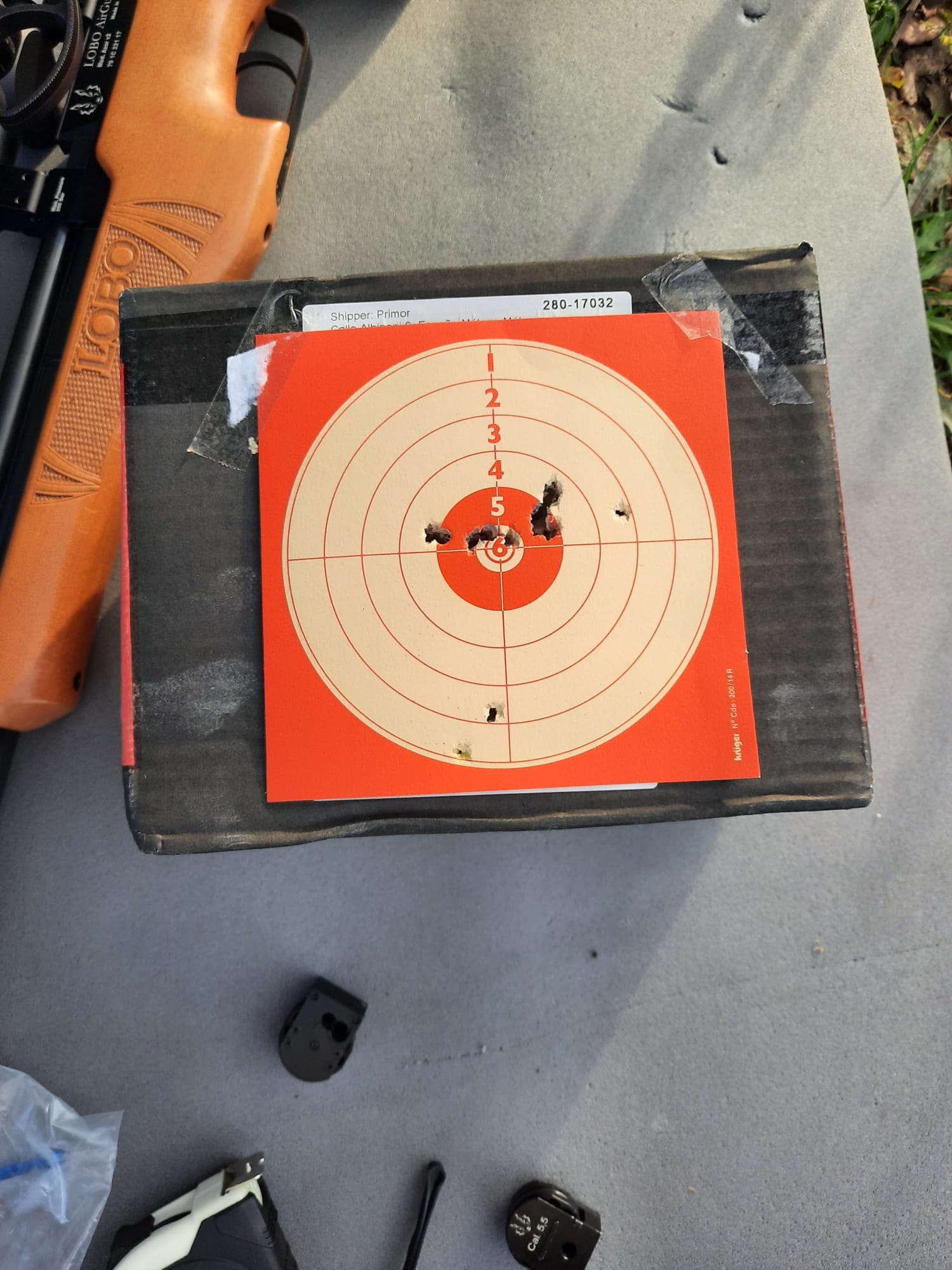 Tras largo periplo para encontrar donde retimbrarbla botella, comprar estación de carga, comprar un visor malilla pero suficiente (Discovery VTZ), por fin he podido ir a tirar y a ajustar la mirar, estoy súper contento he ilusionado por lo que os comparto las dianas, la primera de ajuste, y la segunda de prueba de otro dia, todavía me queda que ajustar, y empezar a ver a 50m que pasa.