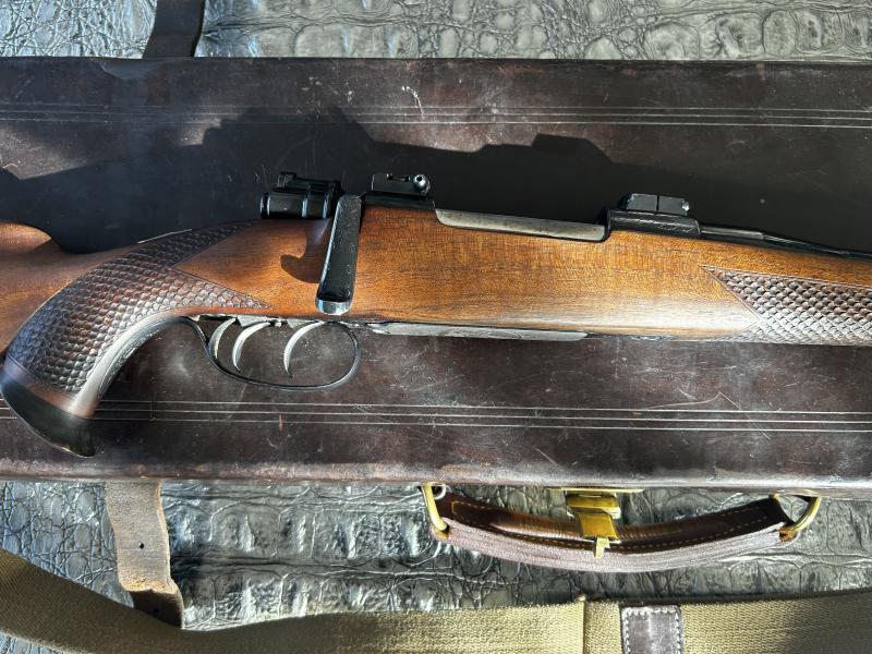 Por limpieza de armero vendo rifle artesanal de cerrojo Anton Sodia, calibre clásico alemán 7x64, maderas al aceite con picada de escama de pescado, culata lomo de jabalí con carrillera y cantonera phasmyr, pistolet con pie de elefante, aceros Boer, placa de cargador con grabados de rebeco y monturas apel. Una pieza clásica para los amantes de las armas. Precio 1800€.