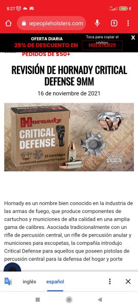 La hornady critical defense, disponible en varios calibres y algunas armerías la tienen. Es muy cara.
