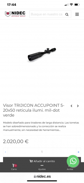 Visor táctico muy luminoso con cribar óptica y tritio. Precio de nuevo en España 2000€ NIDEC