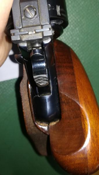 Se le instaló un punto de mira custom para lograr más distancia entre miras y se rebajó el martillo (fotos en siguientes entradas).