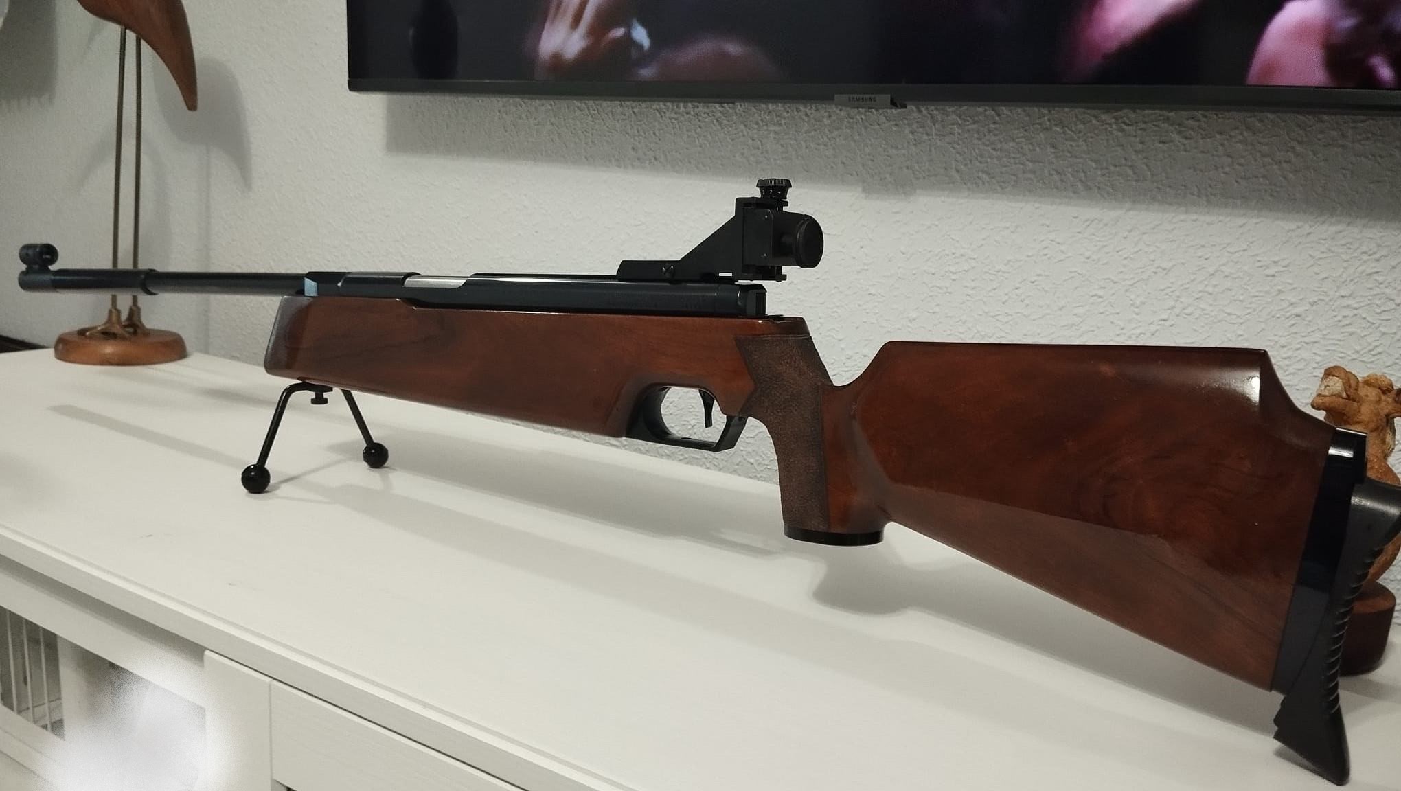 Feinwerkbau 300s, la carabina se encuentra en muy buen estado con miminos signos de uso, el pavonado no presenta oxido ni desgastes apenas marcas, culata de nogal..... presenta mínimas marcas todas superficiales.
