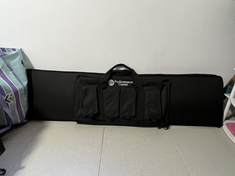 Va con su su funda original y el trípode que viene con el rifle que se ve en las fotos