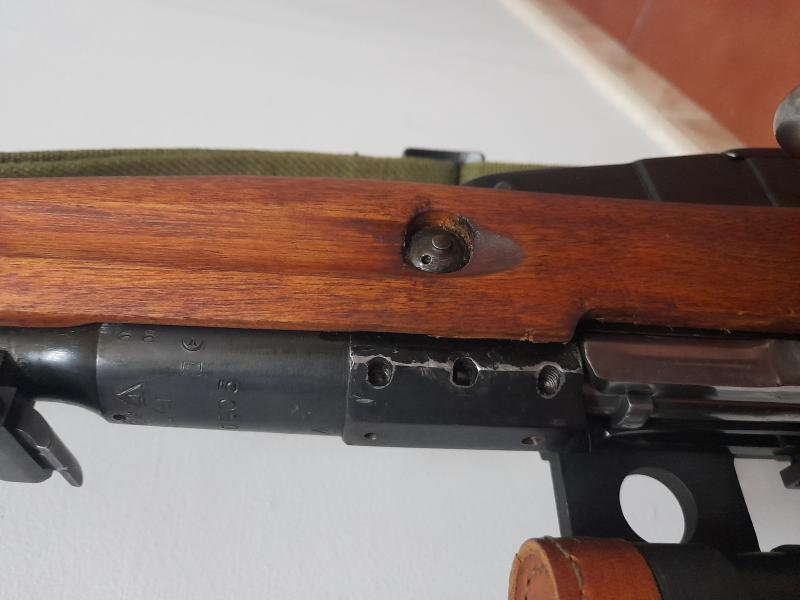 Vendo rifle mosin nagant modelo 91/30 con una mira PU original montada. Tiene unos agujeros hechos para montar anteriormente un raíl. Funciona perfectamente.