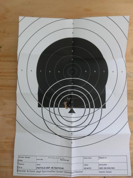 Que conste que no tengo que ver nada ni conozco al vendedor de la H&K pero me gustaría aportar mi experiencia con esta pistola. Es la mejor arma corta del .45ACP con la que he tirado. El disparador, como ya sabéis, es el mismo que montaban en las Expert, de dos tiempos. La precisión a 25m es asombrosa en las manos de un tirador medio. Si tiene algún fallo para mi gusto, puede ser la empuñadura, que al ser de corte policial quizá cueste un poco hacerse a ella, pero a los pocos tiros uno se acostumbra. En realidad son unas pistolas que los tiradores solemos menospreciar, pero en cuanto a precisión cuarenta patadas a muchas made in USA salidas de fábrica.