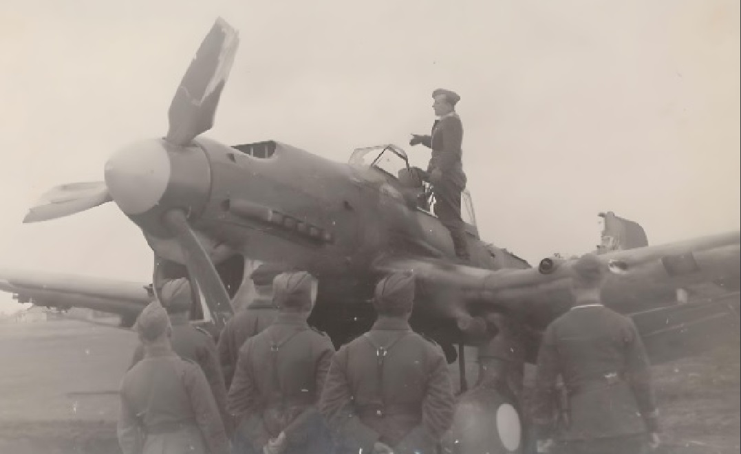 En esta imagen podemos ver en un Aeródromo de la Legión Cóndor, posiblemente el de la Virgen del Camino de León, a un grupo de pilotos vestidos todavía con ropa civil.