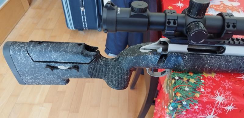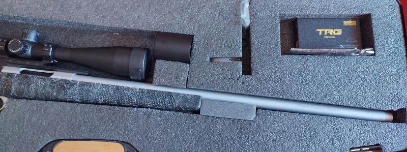 Rifle, maleta, carril de 20 moas en la acción y picattiny para bípode.
