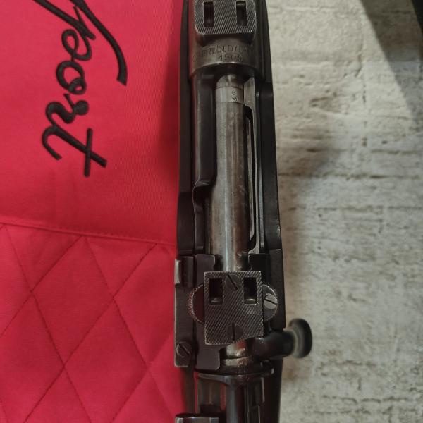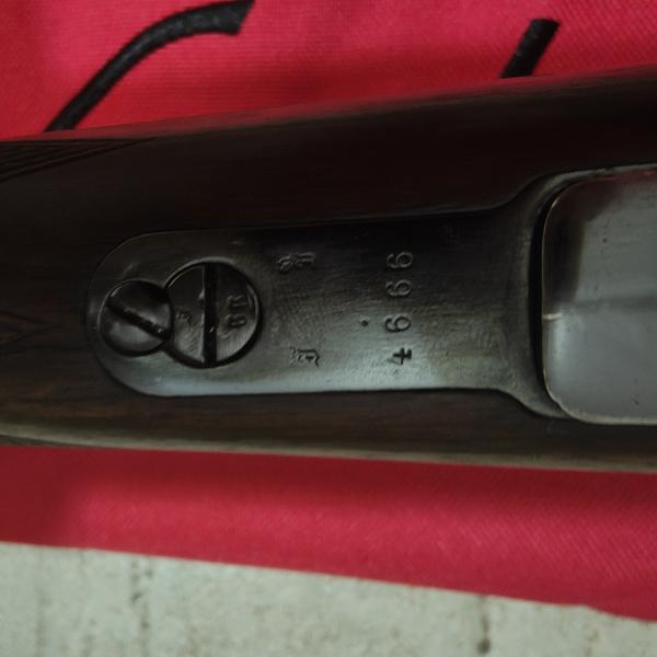 En principio no parece original, el marcaje del puente delantero, no el cañón, no se corresponde con los de Oberndorf, y salva justo el fresado para la base de las monturas, que tampoco se usan en esa época , los visores se empiezan a montar en armas civiles algo después de la Primera Guerra Mundial.