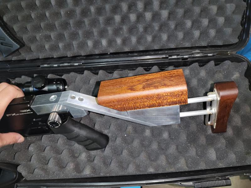 Culata regulable en altura y profundidad para pcp Fx Dreamline hecha en aluminio macizo y madera. La vendo por cambio a culata tipo ar. Tambien cambio por cañon completo a partir de 500mm de 5,5 para fx dreamline.