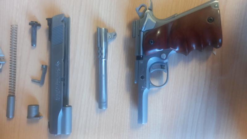 Calibre 45 ACP, combinación de inox brillante y mate. Comprada para utilizar en IPSC CLASSIC, pero al final no va a poder ser.