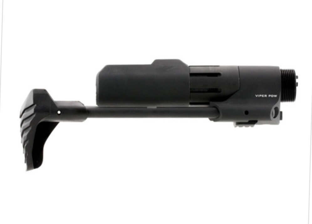 -Culatas Strike Viper PDW retráctil mediante varillas y tubo minimalista, otra Strike Viper sobre tubo de fábrica y una tercera Magpul SL-K.