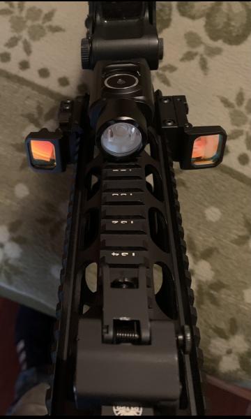 -Dos visores de punto rojo abatibles instalados lateralmente.