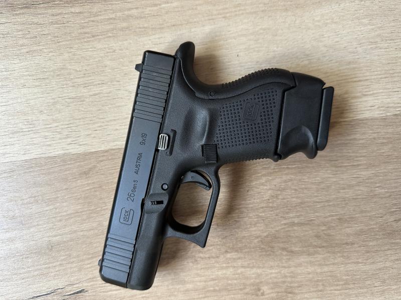 VENDIDA. Glock 26 Gen5 guiada en F . Lleva instalado el conector de 3,5 libras para suavizar el disparador . Estado impecable , como nueva , pocos disparos .Precio 500 euros .