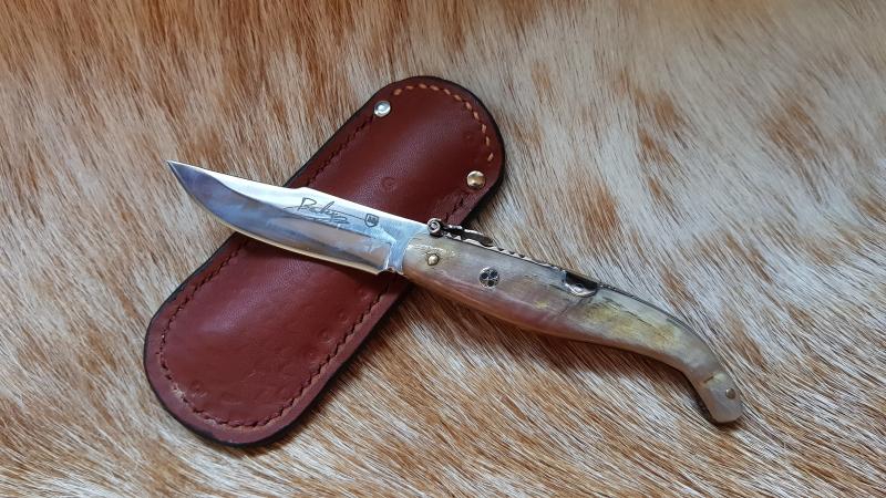 Barbero Albaceteña 3 - 40€ - Precio original 85, cachas de carnero rubias y rojizas, con pin decorativo, hoja muy afilada, una navaja pequeña para portar fácilmente y llevando siempre exclusividad y trabajo artesano en el bolsillo