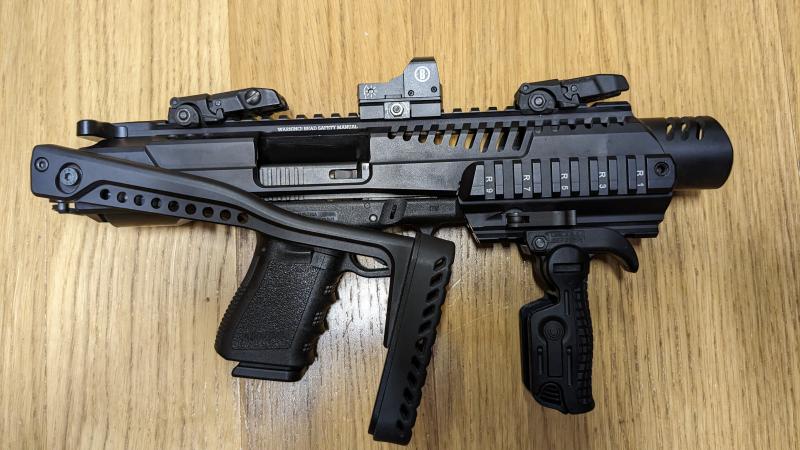 Kit fab defense kpos para Glock , original,con holográfico Bushnell. Transforma la pistola Glock en un subfusil. Alzas incluidas. Perfecto estado.
