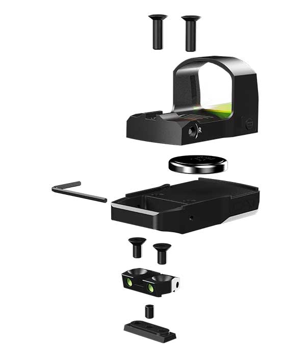 Sistema de mira Red Dot compacta ,de bajo perfil con montaje magnético y alza fotoluminiscente