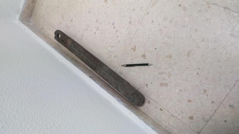 Pues si se ve a simple vista: un genuino y agujereado hierro, más gordo que un bolígrafo. Si es que os quejáis por todo.