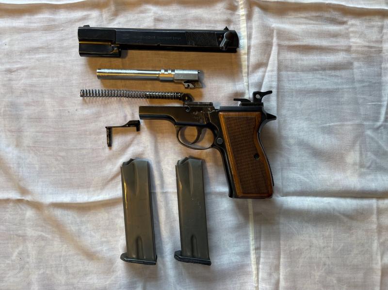 Arma muy fiable y en buen estado que incluye funda y dos cargadores.