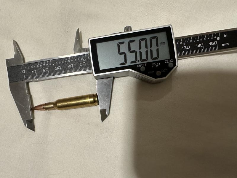 Yo recargo de hace mucho en semiautomático y mi cota es de 55,10 e incluso a veces un poco más, para punta de 55 grains.