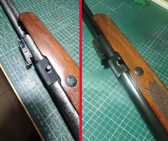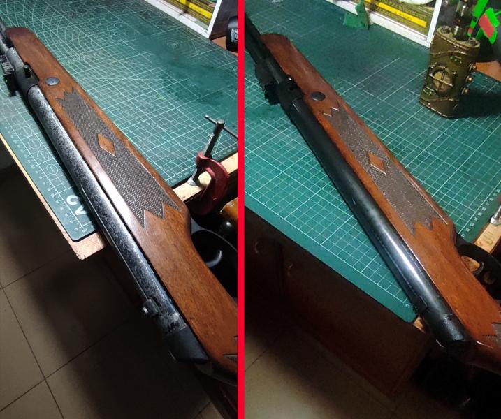 Por fin, después de algunos días sin poder trabajar en la Norica Quick, he podido terminar el pavonado y el rearme de toda la carabina. Ya fue devuelta a su propietario y probada para gusto de ambos
