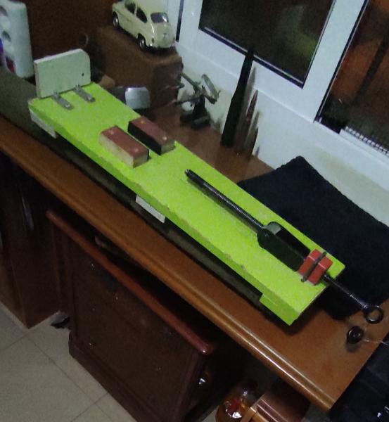 Muy buen sistema para los muelles, tomo nota de algunas buenas ideas. Yo me hice algo parecido. Comparto la foto. Ese fue un primer prototipo, ya le he hecho algunas mejoras. Saludos.