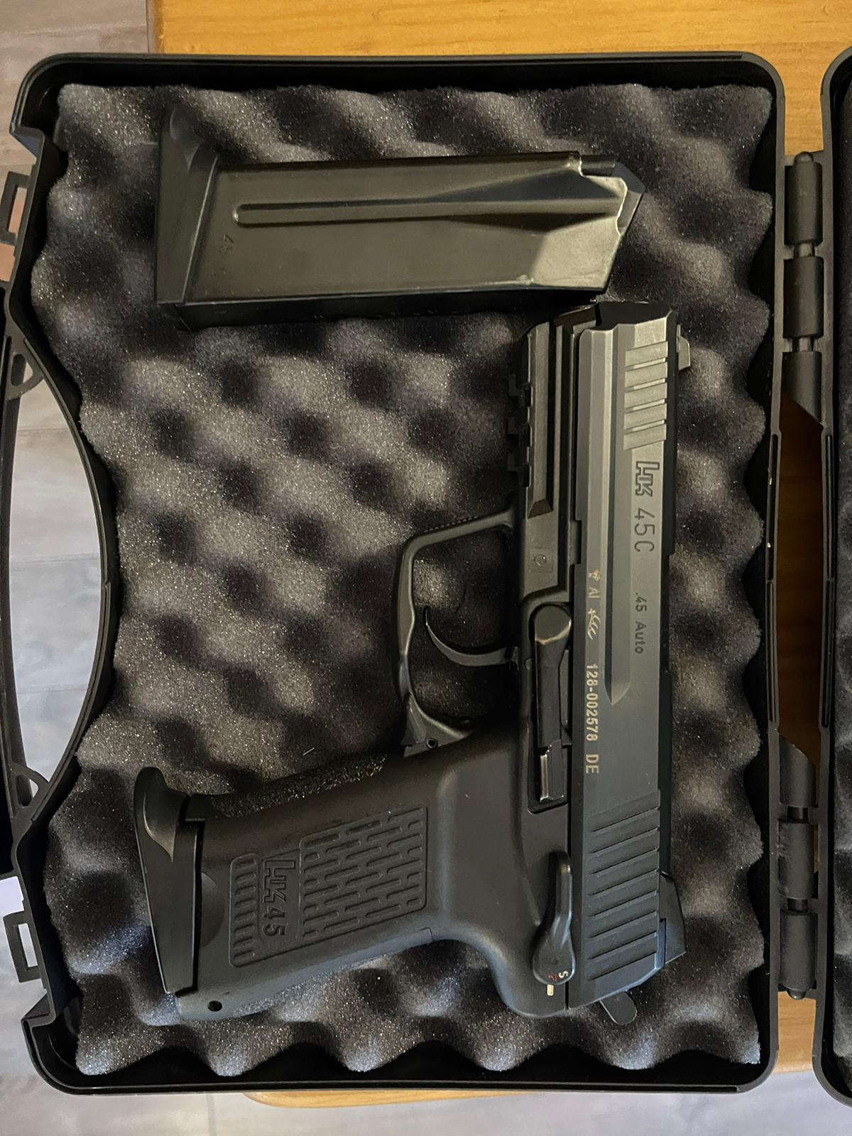 Vendo HK 45C calibre 45acp en excelente estado y guiada siempre en A. Habré disparado no llega a 100 cartuchos. Soy su segundo propietario.
