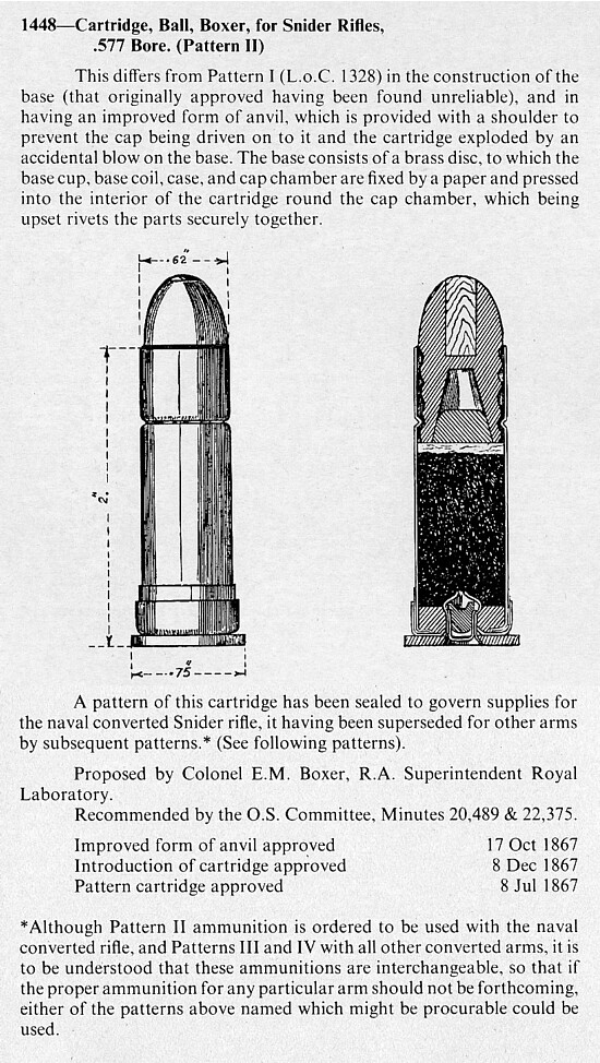 El calibre de dicho arma es el .577 Snider, al ser un calibre obsoleto y que no se puede adquirir comercialmente, es obligatorio recargar.