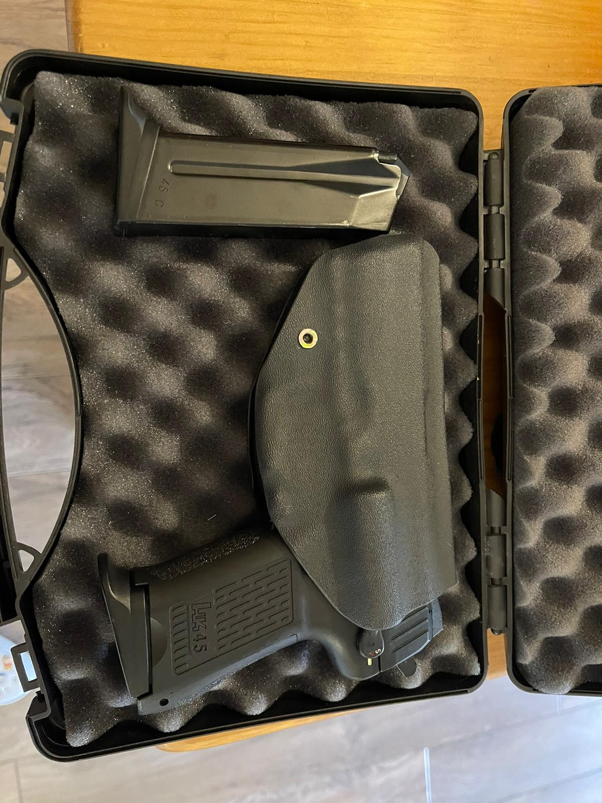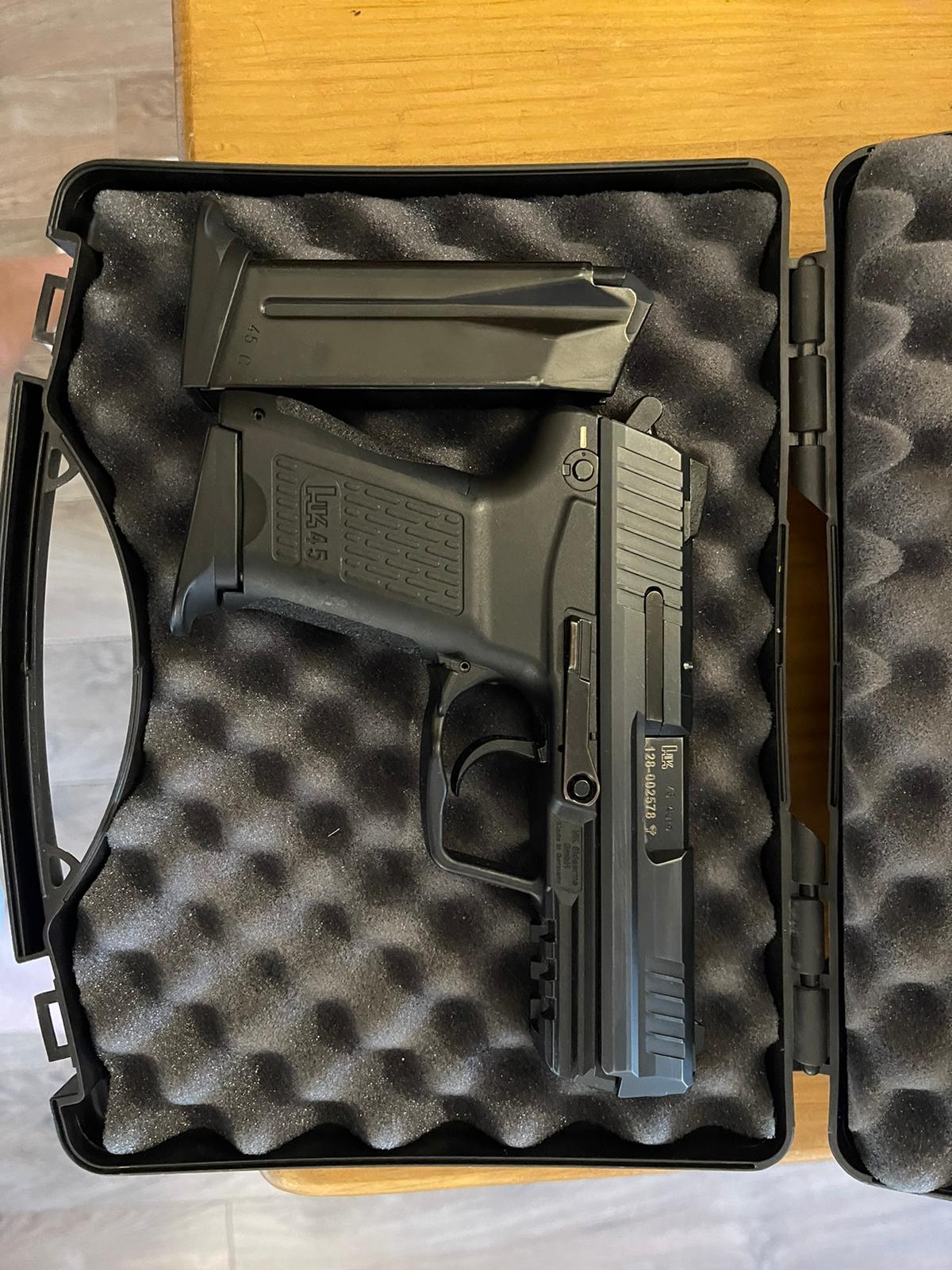 Vendo HK 45C calibre 45acp en excelente estado y guiada siempre en A. Habré disparado no llega a 100 cartuchos. Soy su segundo propietario.