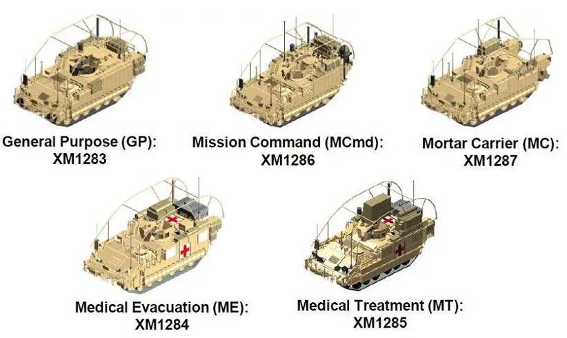 El Vehículo Blindado Multipropósito (AMPV), dotado de 5 variantes a saber y que os pongo la imagen de toda la familia: