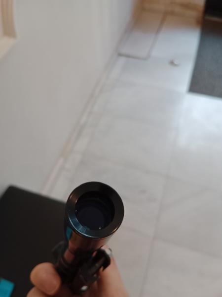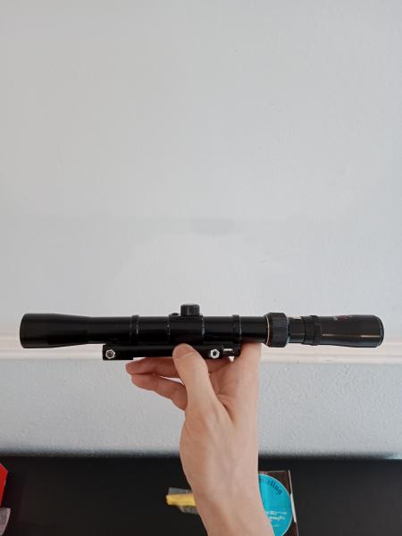 En buen estado para sus años, no lo he llegado a usar. Lleva una montura monopieza a carril dovetail, caja y documentación originales. Retícula crosshair.