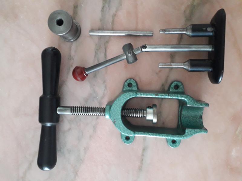 Tras realizar unas excavaciones arqueológicas en el trastero han aparecido estos artefactos de la época en que los cartagineses recargaban .38 spl. La pequeña pieza roscada para desempistonar está rota, pero un buen tornero puede fabricar otra sin problemas. Para nostálgicos coleccionistas de cosas raras que no les importe aflojar la cartera para decorar estanterías: 35,00 € con portes incluídos a la península. Whats 62$879&49#61.