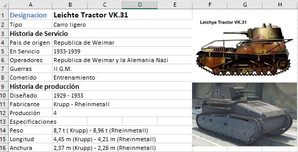 Y finalmente, creo una ficha de cada uno de ellos, muchas veces (sino de que otra manera), sacando los datos de Internet pero que yo paso esos datos a unas fichas que hago en Excel, que encabeza el nombre del vehículo y una imagen.