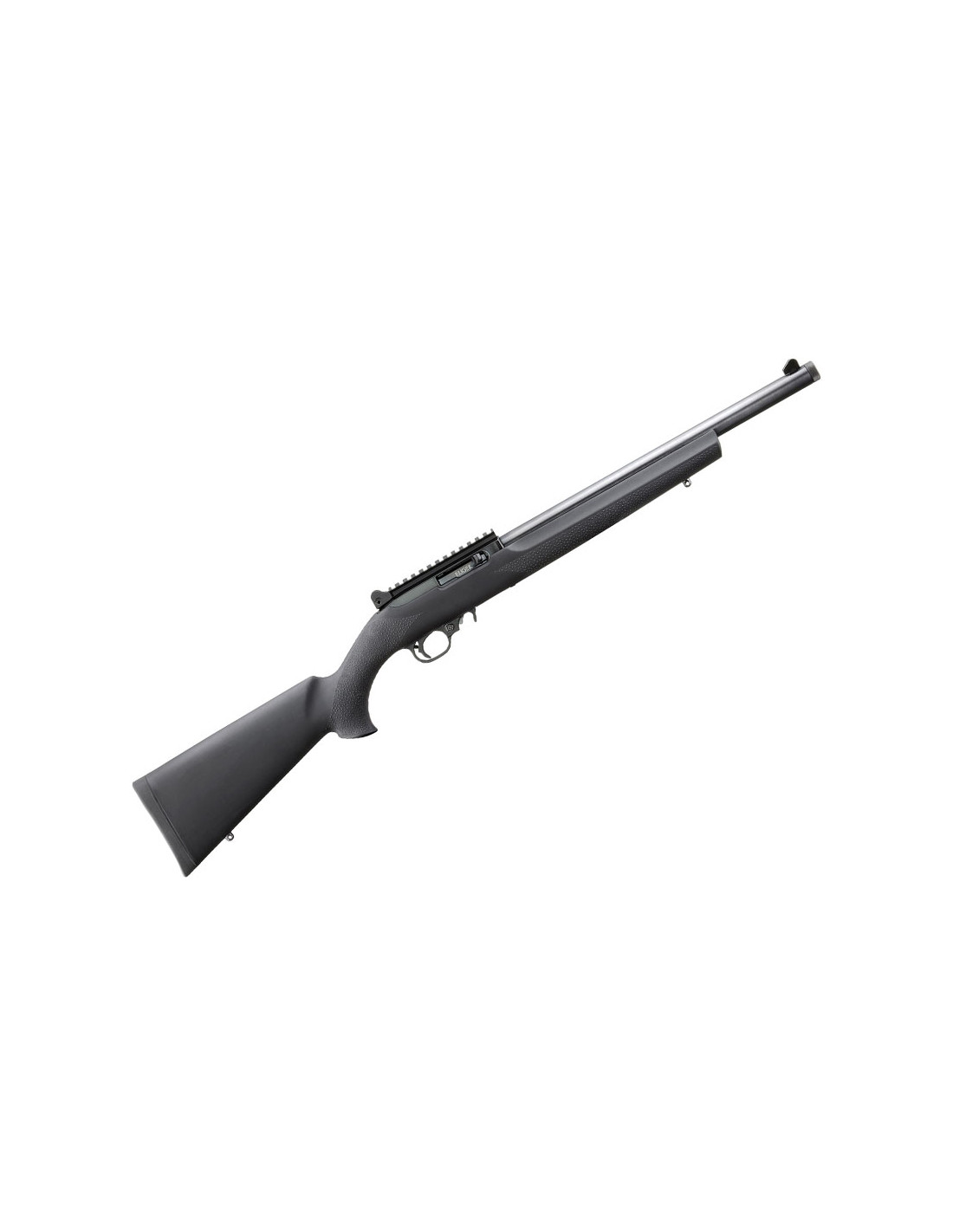 El modelo 10/22 Carbine HB viene con cañón pesado roscado (paso de hilo 1/2"-28) fabricado en aleación de acero de 409 mm. de longitud en acabado pavonado, cajón de mecanismos de acero, culata Hogue® y carril Picatinny compatible en su parte posterior con alza abierta ajustable.