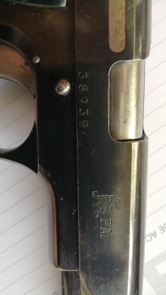 Número de asignación en la Policía Armada : 38939 se encuentra en corredera, cara opuesta bajo ventana expulsora.