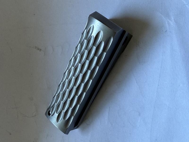 Lomo empuñadura para 1911 en inox . Estriado especial escamado de luxe .Completo con su muelle real y “plungers” . 50 euros puesto en casa en península .