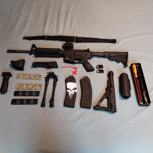 Se vende Chiappa Mfour M4 en calibre 22lr. Arma totalmente fiable dispara cualquier clase de munición sin interrupción. Réplica en polímero y fibra de vidrio de alta resistencia. Se vende con todo lo que se ve en las fotografías. Punto rojo/verde, dos cargadores de 28 rondas, bípode, correa de un punto, gripe, etc la culata fue cambiada por una móvil y el guardamanos por uno de aluminio, se entrega todas las piezas antiguas. Precio 600€ NO negociable, solo Madrid y alrededores, no hago envíos.