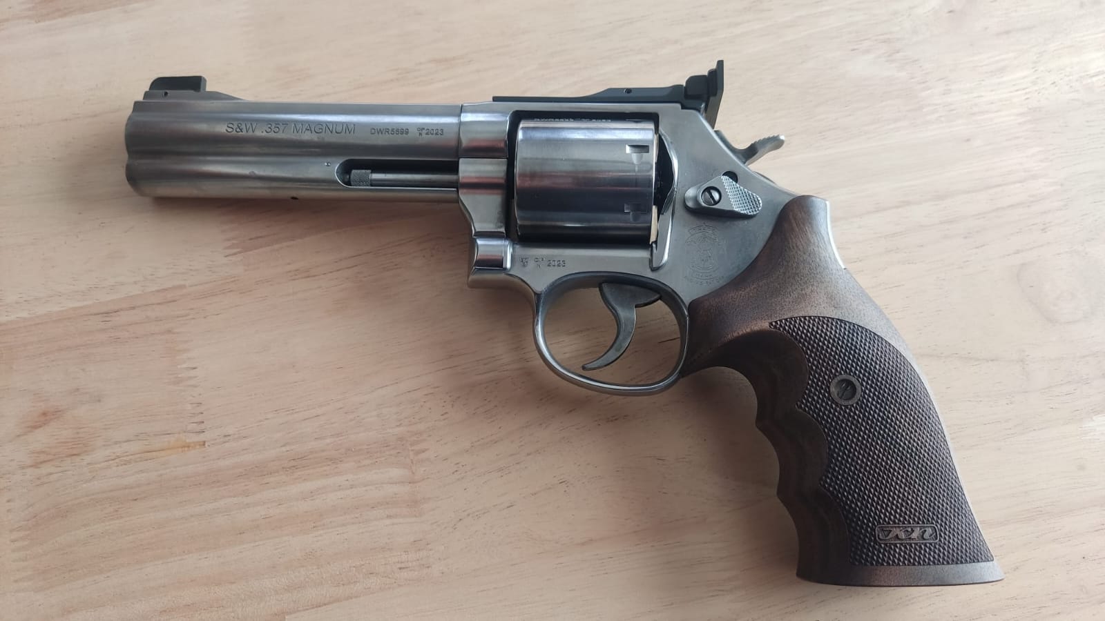 El que trae Borchers aquí es este, con cachas solo de madera, pero vamos eso es lo de menos, unas cachas de goma siempre se pueden conseguir aparte: https://www.smith-wesson.com/product/l-frame-150854