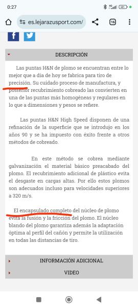 Me explico.... No sé donde estos días he leído que está considerada punta hueca aquella que se ve el interior de plomo a través del hueco de la punta , es decir que la camisa no es al completo para q se expanda y haga la función de fragmentación.....pero el fabricante h&N pone que el recubrimiento es completo y que son puntas específicas para precisión.