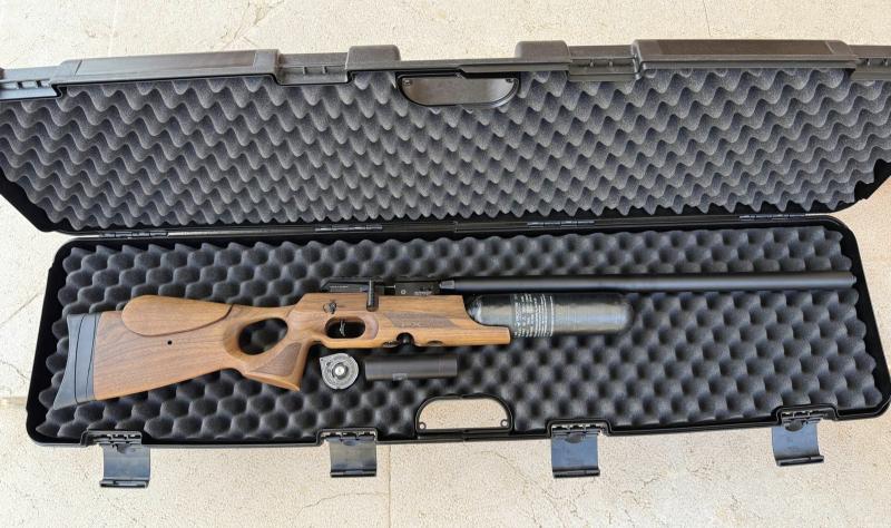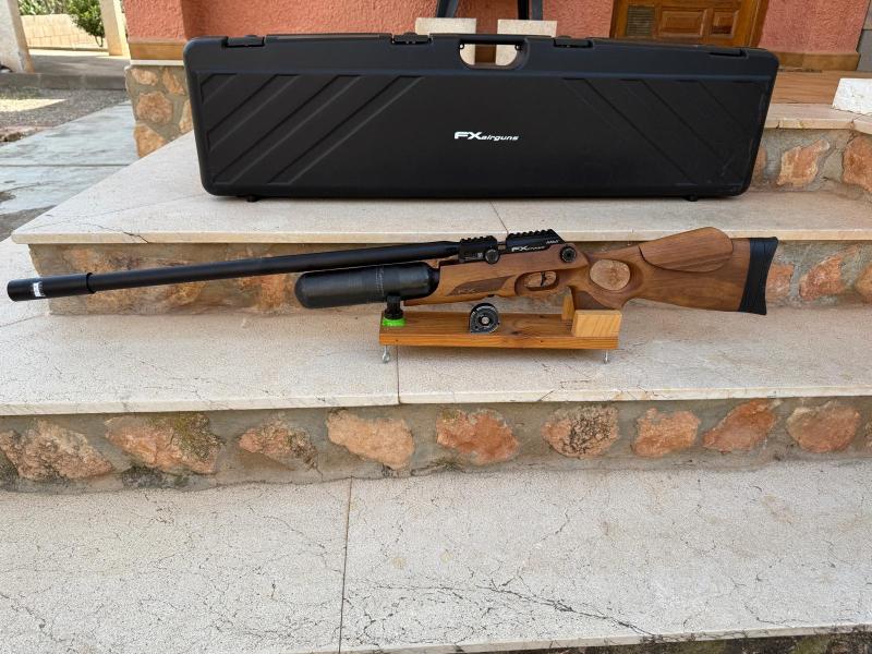 Hola que tal.Un buen amigo me ha pedido que ponga en venta,por abandono de afición,una fantástica FX Crown Nogal en calibre 5,5 con cañón de 600mm y botella de 480 cc.