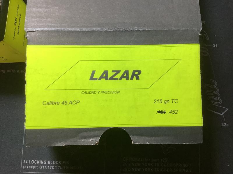 Se venden dos cajas de puntas del .45 ACP lazar troncocónicas de 215 gn, cada caja tiene 200 el precio es de 40€ por caja o 75€ las dos más gastos de envío ,si es en Madrid o Guadalajara se pueden entregar en mano