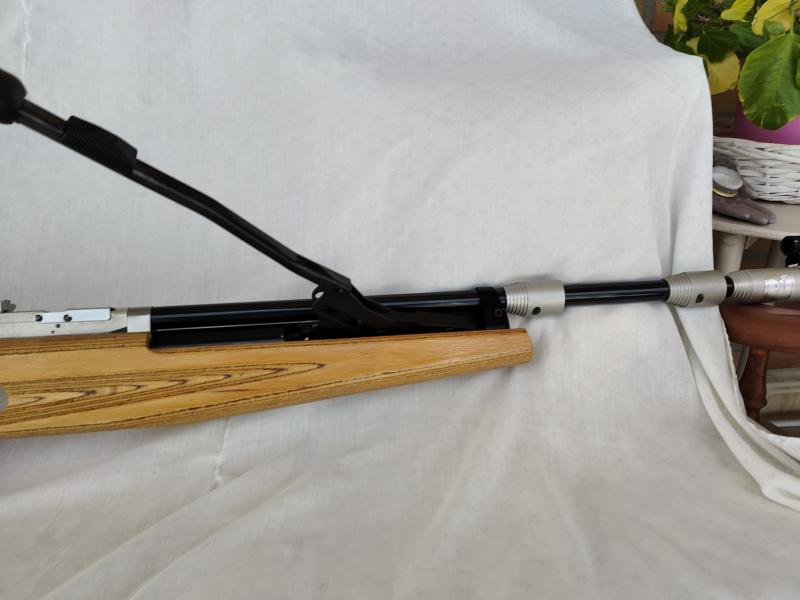 Carabina de competición de 10 metros y calibre 4,5, muy bien conservada. La culata no presenta golpes ni abolladuras el cañón conserva el pavonado perfectamente. La carabina es plenamente funcional; conserva la presión. Lleva un diópter estenopéico Hämerli y rabera de aluminio. Gracias