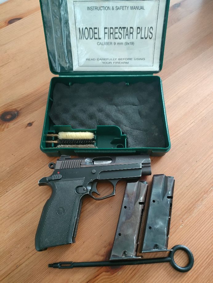 Un Compañero vende Pistola STAR modelo FIRESTAR PLUS calibre 9mmP, guiada en A, la entrega con dos Cargadores con capacidad para 13 balas y en su caja original.