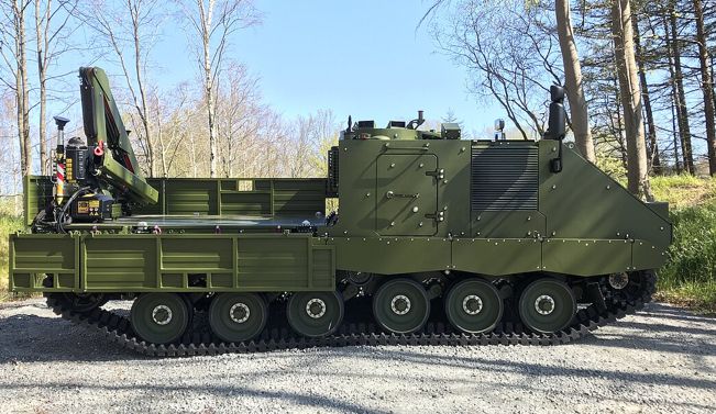 Su configuración es un bastidor sobre cadenas con 6 ruedas rodaje con cadenas de goma y núcleo de acero, visto frontalmente es casi una copia del TOA M-113 y yo diría hasta la parte delantera superior de la cubierta motor. Esta cortada la barcaza del centro hacia atrás, donde se alojan los diversos módulos, repito al estilo del Boxer GTK 8x8, quitas un modulo y pones otro según la necesidad. Curiosamente este vehículo lo desarrolla la empresa alemana FFG para el ejercito noruego, y tiene un antecedente que es el PMMC G5 que era cerrado y que el primer prototipo salió en el 2009 para sustituir a los M113. Durante el 2012 y 2013 se somete a extensas pruebas campo a través y balísticas incluso en el 2017 pasa las pruebas en desierto a +50º y en el ártico a -40º. Inicialmente se pensó en 6 variantes, mando, ingenieros, mortero con un 120 mm., recuperación y taller, porta personal y ambulancia.