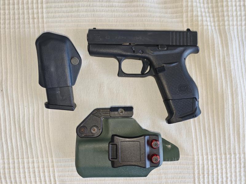 Se vende pistola Glock 43 en 9×19 mm, en muy buen estado y con pocos disparos (menos de 50).