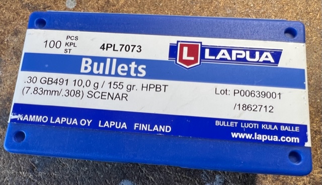 -Puntas Lapua 308 Win Scenar de 155 grains -> 65 € / caja de 100 (vendidas).