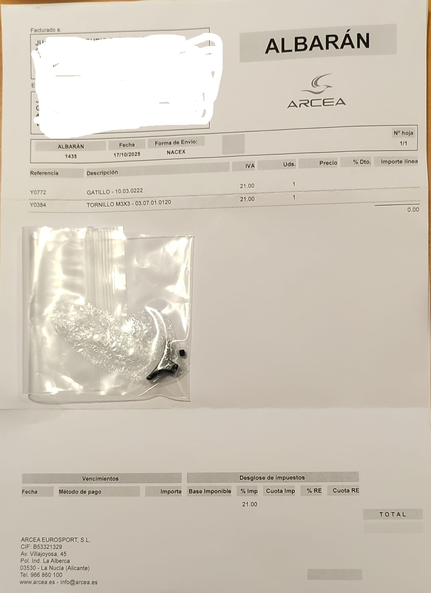 Sé de una armería sita en Burriana que ya podría tomar, aunque fuera un poco, de ejemplo de Arcea. No hay manera de que ni tan siquiera respondan a consulta ni por WhatsApp ni por llamada de voz, bueno, a esto último ni descuelgan a la llamada.