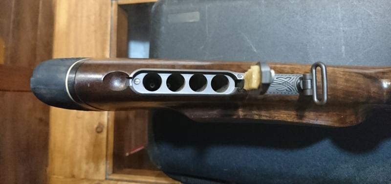 El rifle esta guardado ya tiempo en armero, no ha salido de caza esta impoluto, mirar maderas.... también el estado del pavón de los cañones... etc