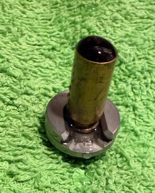 Ya está fuera. Se queda un poco atascado a veces el útil en el casquillo, pero todo depende de la forma que tenga después de haber se disparado. Nada que con dos alicates no seas capaz de solucionar. El trapo del fondo es porque el agua se sale al salir el pistón.