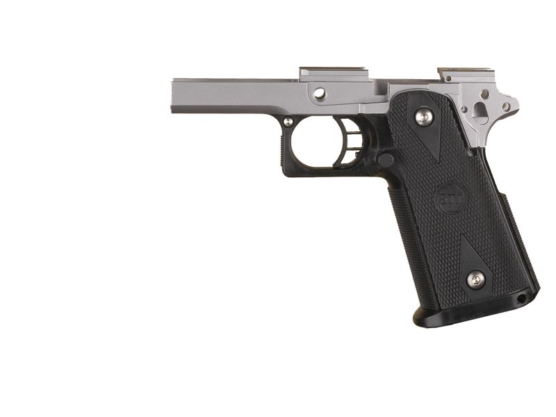 La modificación básica no es más que el ensanchamiento de la empuñadura, a fin de alojar un cargador de doble hilera, para aumentar su capacidad. El resto del arma en principio es igual a una 1911 clásica. De hecho la corredera y el resto del armazón son iguales, tan iguales que son intercambiables, obviamente con el ajuste adecuado.