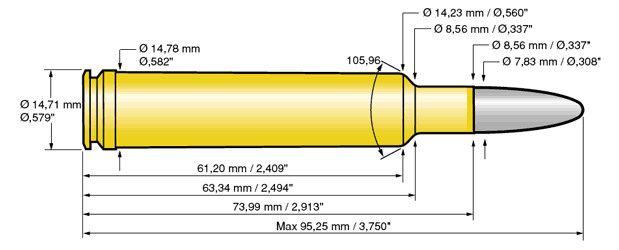 - .308 Norma Magnum (no confundir con el 7,62x51 NATO)